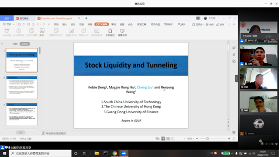7月17日上午,第二十二期“会计博士论坛”在线上(腾讯会议)举行。会上刘程博士报告了题为《Stock Liquidity and Tunneling》的工作论文,会议邀请金融与投资公司陈辉教授到会点评。文芳经理、舒利敏副经理、吴冬梅博士、陈晖丽博士、何漪漪博士、周静博士、甄丽明博士等参与了本次研讨,另有20多位研究生和本科生到会旁听。