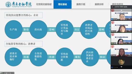 会上,袁玉坤、邱元波、冯家鑫、温豪4位报告人分别作了题为《普惠金融提升了农村金融服务效率吗——以兰考模式为例》、《企业自愿性信息披露与股价波动研究—以容百科技为例》、《苏宁易购全场景零售布局下并购万达百货绩效研究》、《“混改”背景下国资企业并购民企动因和成效研究——以恒健控股与东莞金控并购易事特为例》的工作论文报告。点评老师们建议报告人补充对农村金融服务效率的测量方法和测量样本,对统计数据进行更全面综合的分析和处理,注意文章逻辑顺序;同时文章用词注意学术严谨,文献评述做到有述有评;合并案例过程和分析,寻找核心理论对案例进行梳理并进行系统性分析。