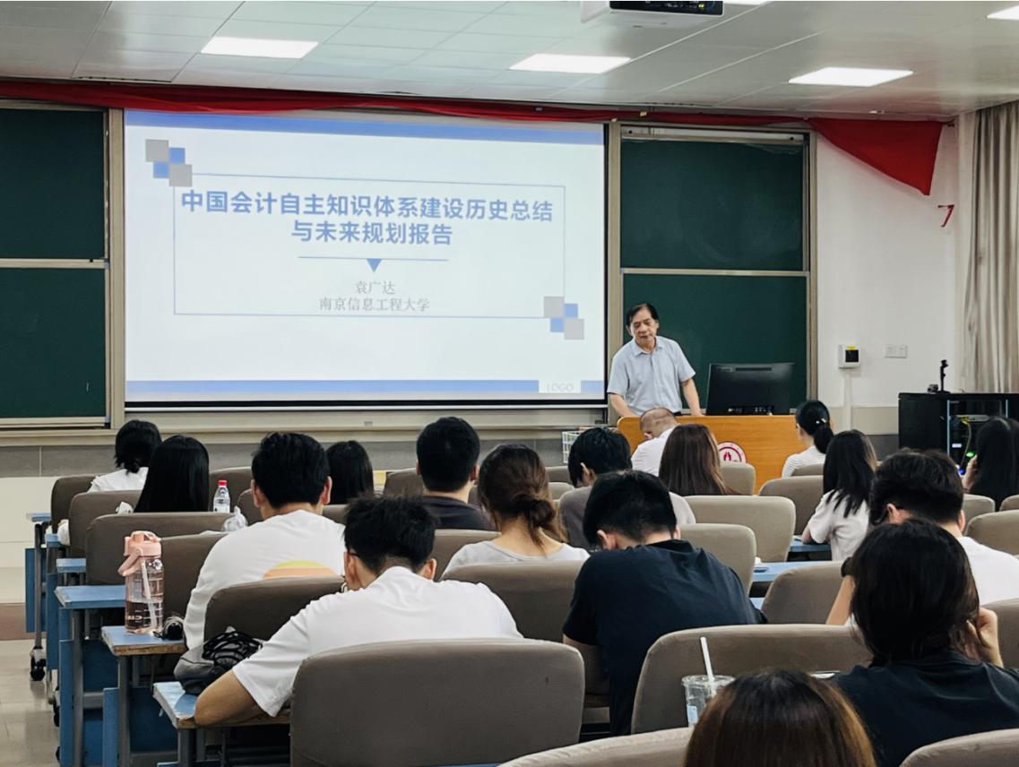 2024年6月19日下午,由DB真人旗舰和粤港澳大湾区产业升级与企业创新研究中心联合举办的“DB真人旗舰研究生讲坛(第五期)”在北教B201成功举行。此次讲坛邀请南京信息工程大学会计学科带头人、知名环境资源会计专家袁广达教授进行题为“中国自主知识体系的资源环境会计建设与发展研究”的专题讲座。讲座由DB真人旗舰经理秦格教授主持,DB真人旗舰副经理舒利敏副教授及2023级会计硕士研究生参加了本次活动。