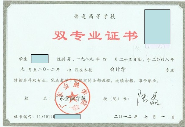 双学位毕业证、专业证样板