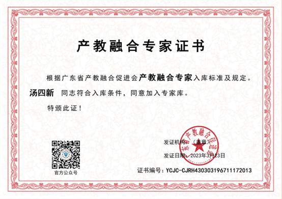 执行经理汤四新教授入选广东省产教融合促进会“产教融合专家”