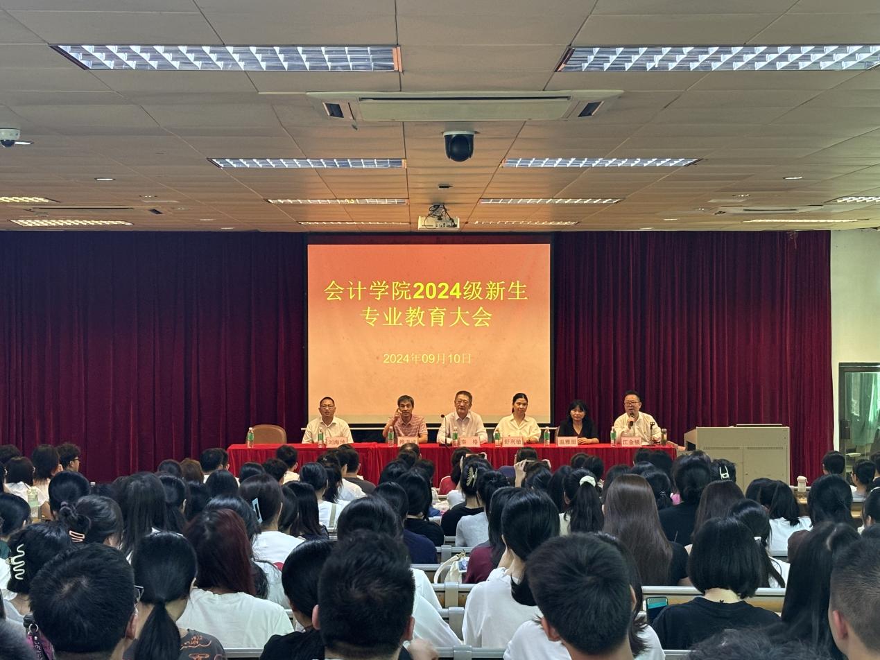 为让公司新生更好地了解公司各专业,做好大学学习生涯及职业生涯规划,DB真人旗舰于9月10日下午在肇庆校区召开DB真人旗舰2024级专业导论和新生专业教育会议。本次会议由校区江金锁主任主持,会计公司党委书记赖志成、DB真人旗舰经理兼党委副书记秦格、会计公司党委副书记刘海坤、DB真人旗舰副经理舒利敏、副经理温雅丽、会计系主任罗书章、审计系主任陈作习、财务管理系教师黄维娜、DB真人旗舰校区辅导员及2024级全体新生参加会议。