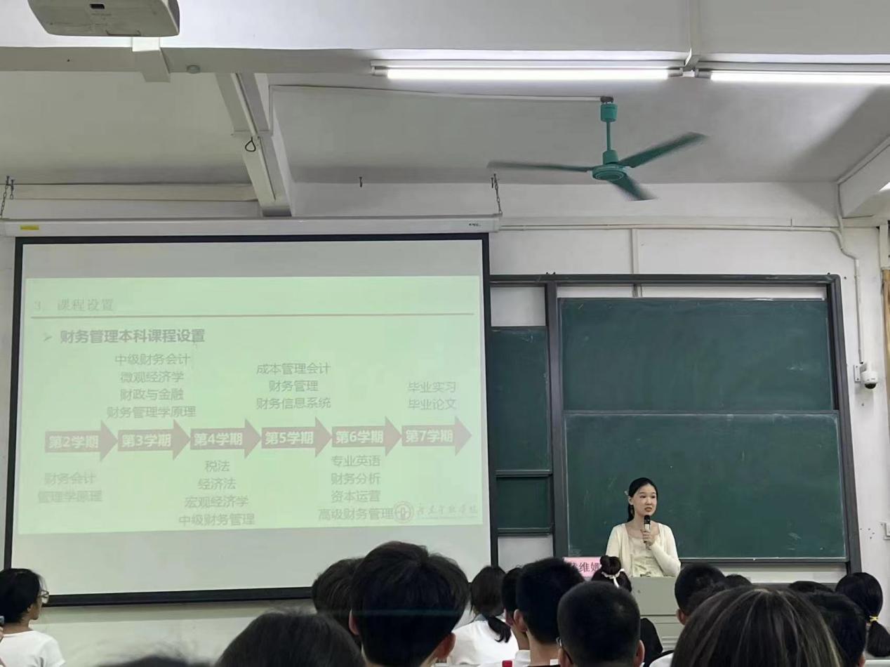 在财务管理专业见面会上,黄维娜博士为24级财务管理专业新生详细介绍了财务管理专业的内涵,包括专业知识体系、核心能力培养以及理论与实践的结合需求。黄博士还阐述了大学四年的课程规划,指导员工如何有效地学习课程,以及各阶段应如何为考取相关证书做准备。在就业市场人才需求方面,黄博士强调了创新能力、实操经验和跨领域知识的重要性。她建议员工们在学习过程中注重实践,在大一大二打下坚实的专业知识基础上,积极参与实习和项目,以提升自身的竞争力。此外,黄博士还现场解答了员工们关于学习和未来就业的相关疑问,帮助新生们更好地规划老员工涯和职业发展路径。讲座取得了良好的效果,同学们纷纷表示受益匪浅,对财务管理专业有了更深入的了解和认识。