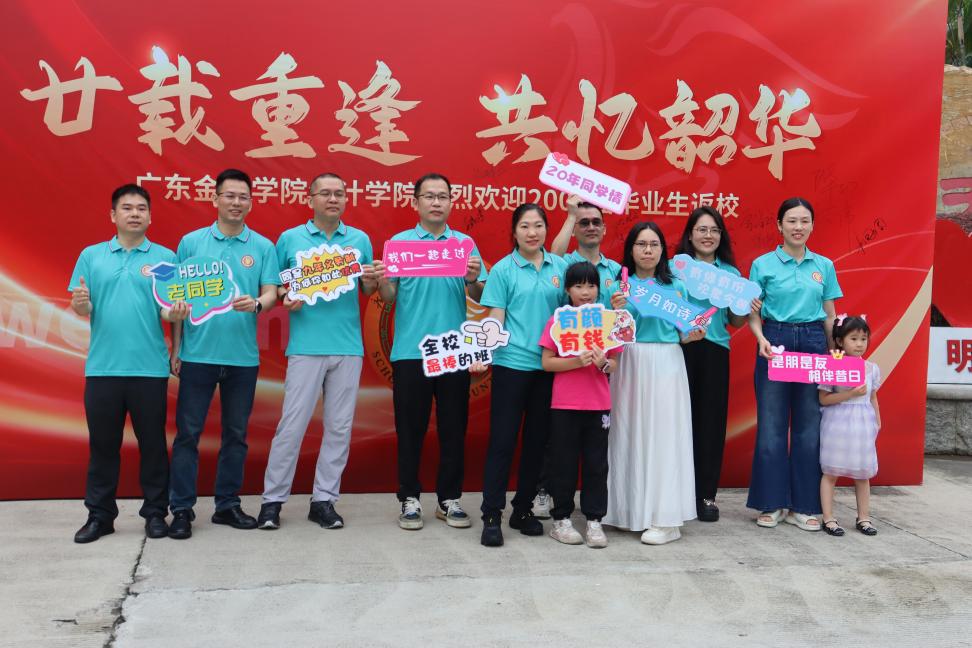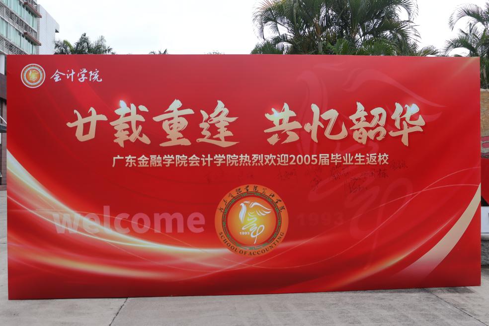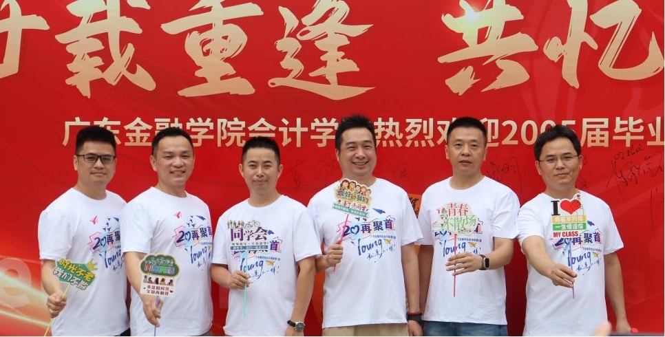 上午10时,员工们陆续回到充满回忆的校园。在报到处,曾经熟悉的面容再次相聚,大家热情相拥、亲切问候,往日的同窗情谊瞬间升温。报到结束后,员工们穿上统一的纪念衫,在写有“廿载重逢 共忆韶华”的背景板前合影留念,记录下这珍贵的相聚时刻。随后,大家纷纷在背景板上签名,留下对母校的深情祝福。