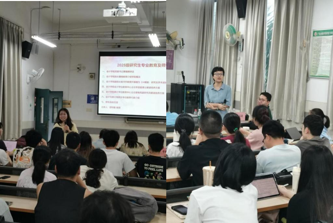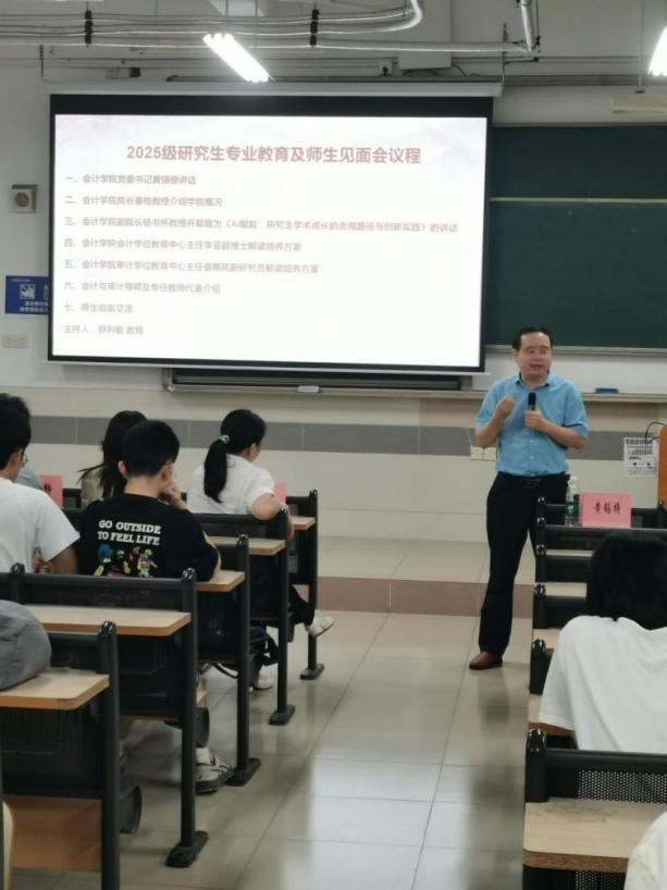 昂首阔步新起点,金秋筑梦正当时。在这个充满收获和希望的季节,DB真人旗舰迎来2025级研究生入校。为帮助2025级研究生顺利完成角色转变、尽快适应研究生学习生活,DB真人旗舰于2025年9月16日下午在北教B404举行2025级硕士研究生专业教育大会暨师生见面会。会议由DB真人旗舰副经理舒利敏副教授主持,公司领导、研究生导师代表、任课教师代表及2025级全体会计硕士和审计硕士研究生参会。