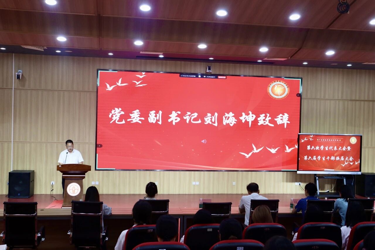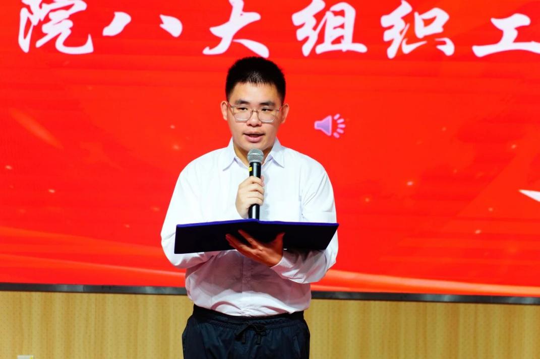 党委副书记刘海坤对到场的领导老师们和同学们致以热烈欢迎。他指出过去一年员工干部八大组织在党委正确领导下,围绕八大工作模块积极作为,开展多项活动获校园文化优秀项目称号,并对新晋干部提出四点要求,强调要强化协同合作、增强主动服务意识、提升综合管理能力、坚持立足实干,鼓励大家赓续公司优良传统,以饱满热情与扎实作风为公司发展贡献力量。