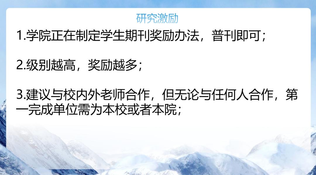 李亚超老师向我们介绍了几种不同的研究方向——案例研究与田野研究,即理性与质性的研究;实证研究,即结合互联网工具为辅进行话题研究。同时,他列举了一些较为热门的研究选题,如数字化转型相关研究、ESG与环境资源会计相关研究、审计相关问题研究等等,使同学们更加有论文撰写的清晰方向。