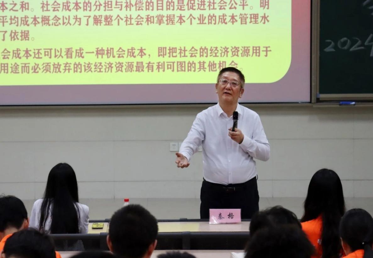 2024年3月28日,秦格副经理在“思政第一课”第二场课程中围绕“电动车自行车的社会成本”这一主题,引导同学们从经济角度思考社会问题,增强社会责任感和使命感。