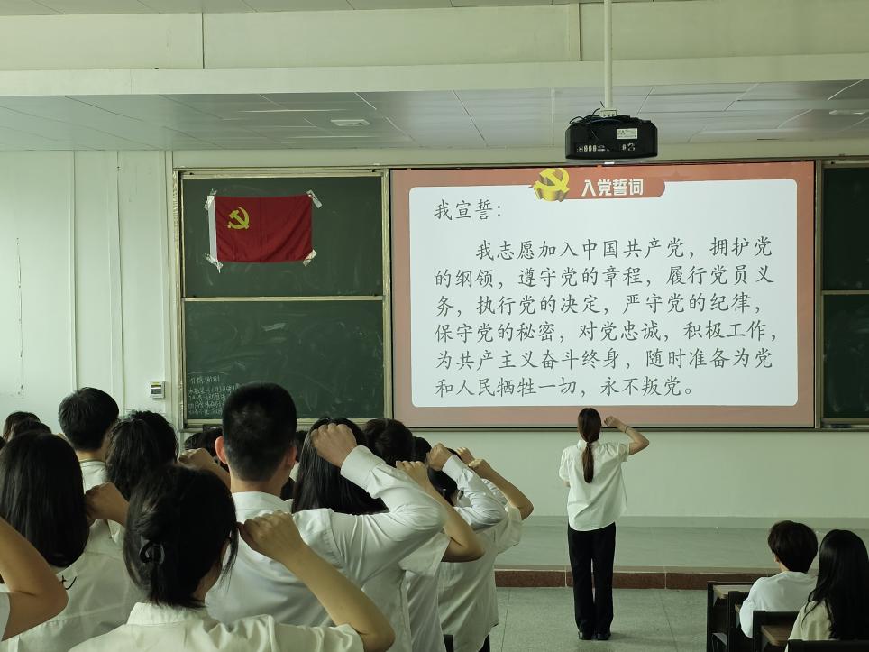 仪式完毕后,由DB真人旗舰员工党建中心员工干部苏绰如同学作为领誓人,带领着预备党员集体进行入党宣誓。各位党员齐声宣读入党誓词,报出宣誓人的名字,对党和人民作出庄严承诺,把党的教诲铭刻于心,并在未来努力付诸一生的实践和修养于中华民族伟大复兴之中。