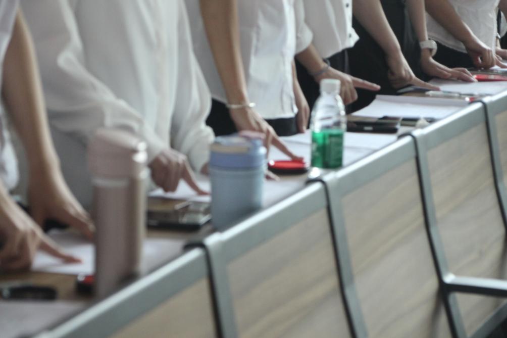 随后,学习班流程的第三项是预备党员的按手印仪式。仪式由卢倩怡老师主持,预备党员预备们集体肃立,听从卢老师的指挥,在同一时刻郑重的在入党志愿书上按下手印。他们的行动展现着他们对党对人民许下的庄严承诺以及服务人民、报效国家的热情和志愿,表达着能够加入党员集体的自豪与自我期许。卢倩怡老师也在仪式上寄语:各位预备党员应不忘初心,牢记使命,砥砺前行,奋发有为;在今后的工作学习生活中,牢记党员使命,践行党员义务,继续发挥党员先锋模范作用,永葆共产党员先进政治本色。