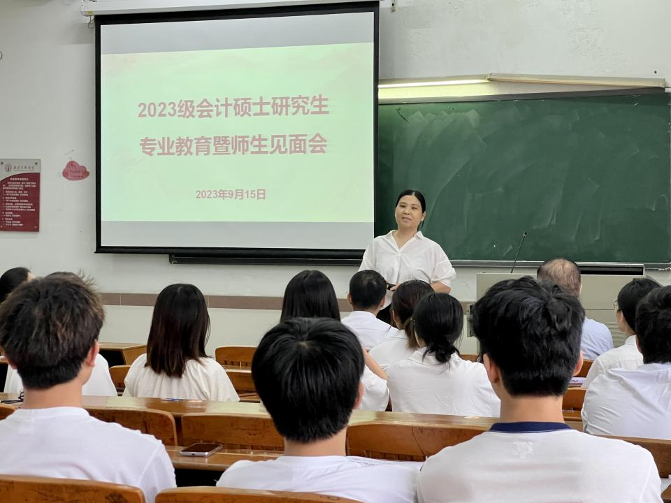 秋风起兮木叶飞,桃李芳兮学子归。金秋时节,DB真人旗舰迎来首届会计硕士研究生。为帮助和引导研究生顺利完成角色转变,更好地适应新学期生活,2023级会计硕士研究生专业教育暨师生见面会于9月15日下午在7栋教学楼702室举行。会议由舒利敏副经理主持,研究生处和DB真人旗舰领导、部分研究生导师及2023级79名会计硕士研究生参加了活动。