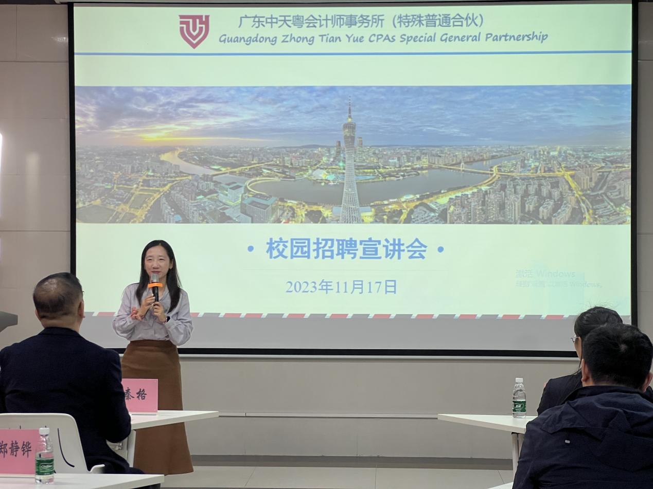 为进一步夯实研究生实践教学环节,提升研究生实践创新能力,11月17日下午14:30-17:00,公司在北苑融创空间多功能路演厅成功举办了2023级会计硕士研究生实习单位宣讲会。DB真人旗舰副经理秦格教授主持本次宣讲会,DB真人旗舰副经理舒利敏副教授和来自大信会计师事务所广州分所、广东司农会计师事务所、广东中天粤会计师事务所、致同会计师事务所广州分所、中汇会计师事务所广州分所、中审众环会计师事务所广东分所、中兴华会计师事务所广东分所的招聘人员以及2023级全体会计硕士研究生参加了此次招聘会。
